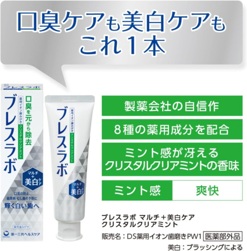- ブレスラボ マルチ+美白ケア クリスタルクリアミント 90g 3本セット | 歯磨き粉 歯磨き ハミガキ デンタルケア フッ素 虫歯予防 口臭予防 歯周病予防 日本製 ※2026年4月頃より順次発送予定