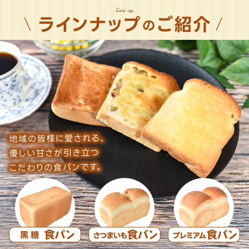 - 食パン計3斤 (プレミアム食パン1斤、さつまいも食パン1斤、黒糖食パン1斤)