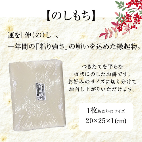 北海道産もち米使用、コシが強くなめらかなのし餅です。