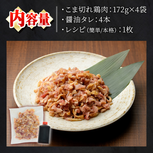 No.1351 炊き込みごはん用!こま切れ鶏肉(4袋) 醤油タレ レシピ2種付き 鶏肉 とりにく 国産 親鳥 タレ 醤油 レシピ 簡単 調理 炊き込みご飯 小分け【庄助】