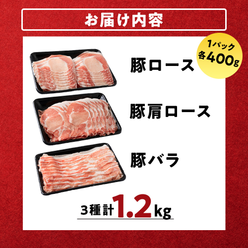 北海道産 白老豚しゃぶしゃぶセット 合計1.2kg(ロース・肩ロース・バラ各400g) BV095