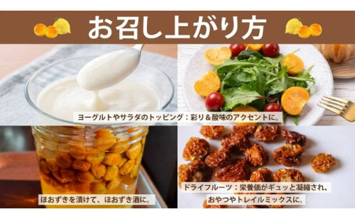 半解凍状態でそのままお召し上がりいただくのはもちろん、冷凍状態のままジャムやシロップ、スイーツ加工に使用することもできます。アイスクリームのトッピングやスムージーの材料としても活躍します。さらにリカーに漬け込んで、ほおずき酒にするのもおすすめです。この独特で豊かなトロピカルな味わいと香りを活かして、様々な調理法や飲み方でお楽しみください。季節を問わず、一年を通じて多彩な食べ方で何度も味わえるのが、冷凍フルーツほおずきの大きな魅力です。こだわりの栽培方法で育てられた完熟の味わいを、ご家族皆様でぜひご堪能ください。大切な方への贈り物としてもおすすめです。