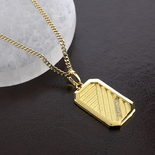 18金とダイヤモンドの高貴な輝きが胸元を明るく照らし、自然と視線を集める上質な一本