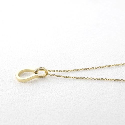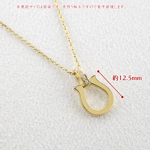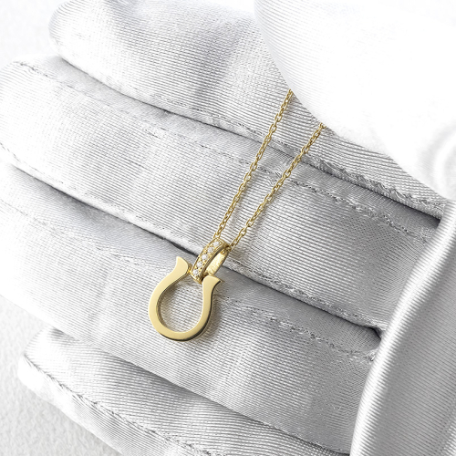 幸運を呼ぶと言い伝えられる馬蹄モチーフにダイヤモンドの輝きを添えたペンダントトップ