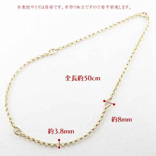 甲丸中空長小豆チェーンとの組み合わせで程よい華やかさ