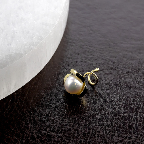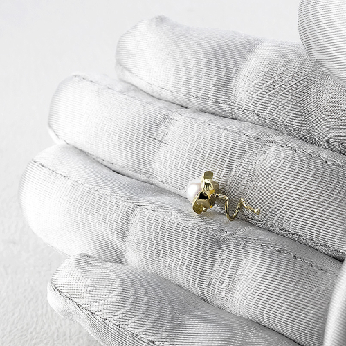 花びらの中心に5mmアコヤパールを添えた可憐な印象のピアス