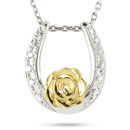 - プラチナ 18金 ネックレス 18k レディース 薔薇 馬蹄 ダイヤモンド 0.11ct ペンダントトップ ダイヤ イエローゴールドK18 pt900 コンビ ゴールド ホースシュー ローズ フラワー 花 ジュエリー 人気 シンプル 240513200dpy SWAA315