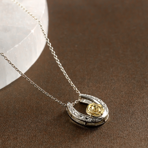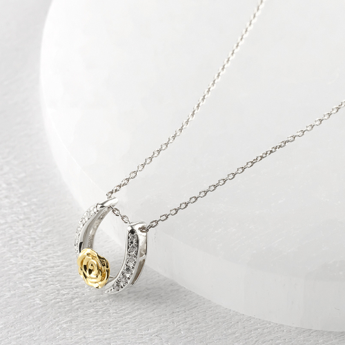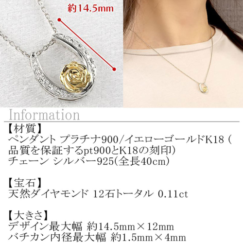 プラチナ 18金 ネックレス 18k レディース 薔薇 馬蹄 ダイヤモンド 0.11ct ペンダントトップ ダイヤ イエローゴールドK18 pt900 コンビ ゴールド ホースシュー ローズ フラワー 花 ジュエリー 人気 シンプル 240513200dpy SWAA315
