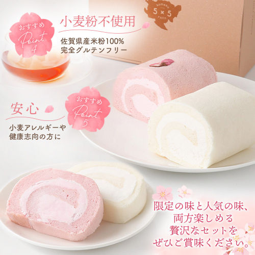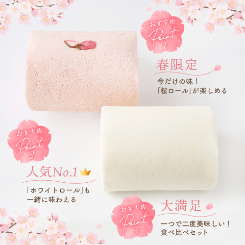 【春限定】ロールケーキ 2種食べ比べセット(天使の桜ロール・天使のホワイトロール)各320g【期間限定 グルテンフリー 米粉 スイーツ ケーキ 詰め合わせ】(H053330)