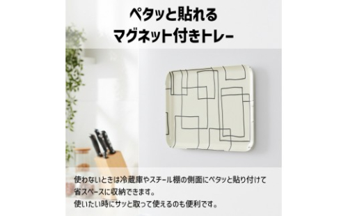 すべり止め加工で食器がずれにくく、使い終わったらマグネットで冷蔵庫へ省スペース収納。