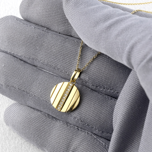 - ネックレス メンズ 18金 18k ゴールド ダイヤモンド ペンダントトップ 大ぶり サークル ダイヤ イエローゴールドK18 ストライプ コイン型 ラウンド お守り ジュエリー シンプル 普段 使い 人気 250520200ym SWAA328