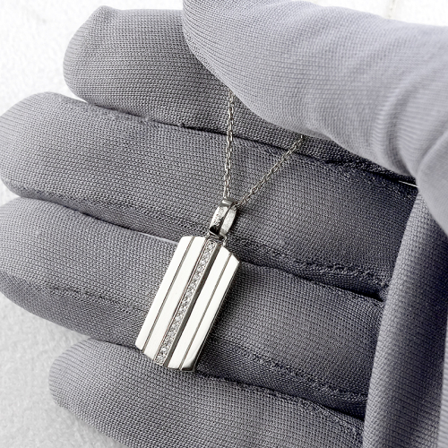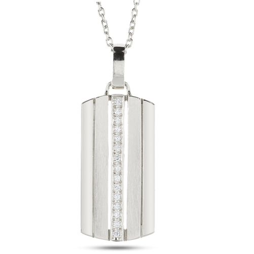 - ネックレス メンズ プラチナ プレート ダイヤモンド 0.08ct ペンダントトップ 大ぶり pt900 ダイヤ ストライプ タグペンダント ジュエリー シンプル 大きめ 普段 使い 人気 250520201pm SWAA330