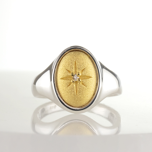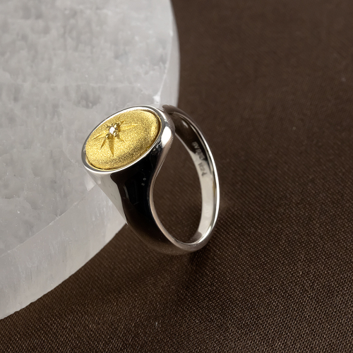 丸みのあるカボションタイプの純金がどこかユーモラスなシグネットリング