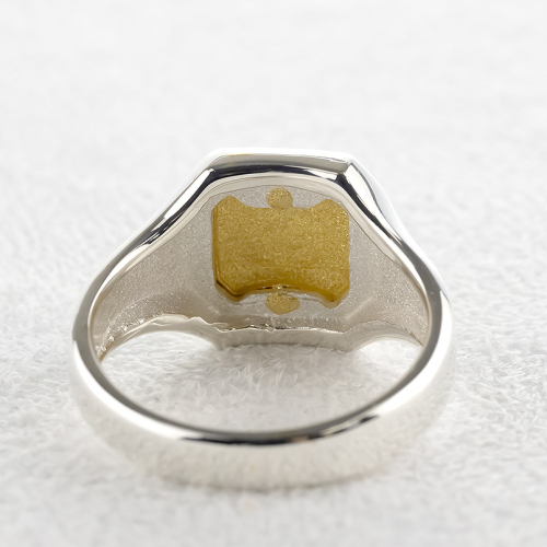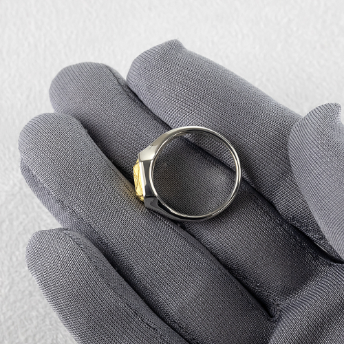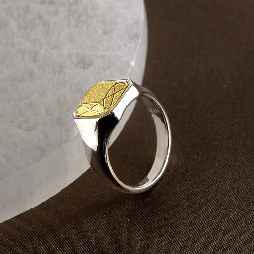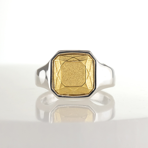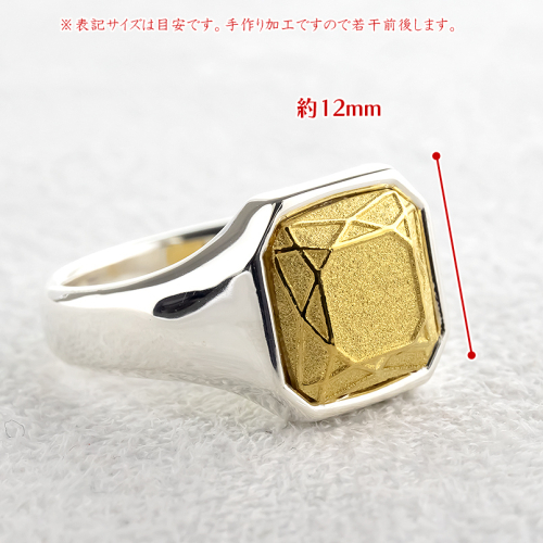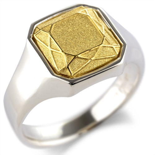 純金部分は宝石をカットしたような遊び心のあるシグネットリング