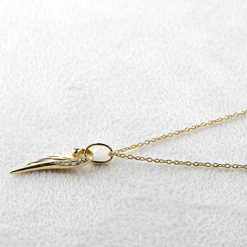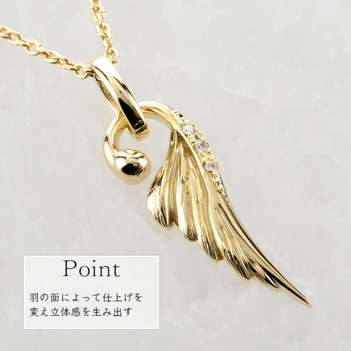 - ネックレス 18金 18k メンズ フェザー 羽根 ダイヤモンド ペンダントトップ 羽 イエローゴールドK18 ゴールド シンプル ジュエリー 普段 使い 190523100dym-s SWAA333-gd