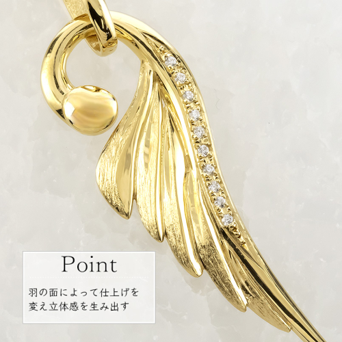 飛躍や運気上昇を象徴するフェザーを、細部までこだわったペンダントトップ