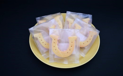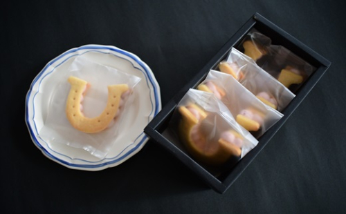浦河産「夏いちご(すずあかね)」を使ったバタークリームを蹄鉄型のクッキーで挟みました。