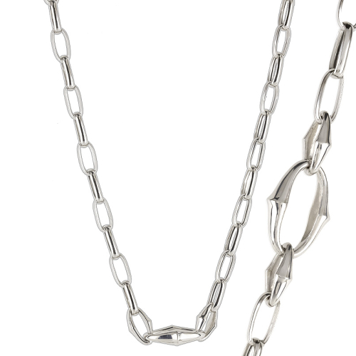 大人の装いにさりげなく映える洗練されたプラチナネックレス