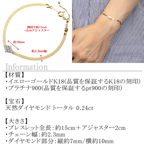 - ブレスレット 18金 プラチナ レディース ダイヤモンド ゴールド pt900 イエローゴールドK18 アジャスター付き スネークチェーン 17cm 太め フラット ジュエリー シンプル 人気 普段 使い 250603mro400dy SWAA345