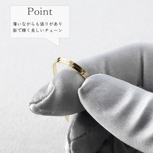 柔らかなチェーンの動きが女性らしさを引き立て、幅広く活躍する上質ジュエリー