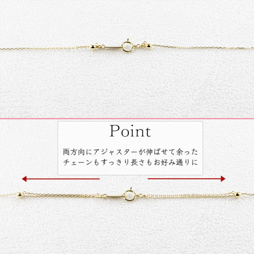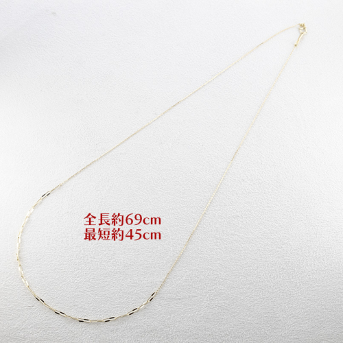 最短45cm〜最長69cmまで自在に調整できる便利なネックレス