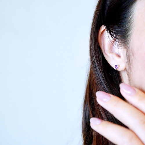 魅力的なパープルとハートシェイプが耳元で上品に煌めきを放ちます。