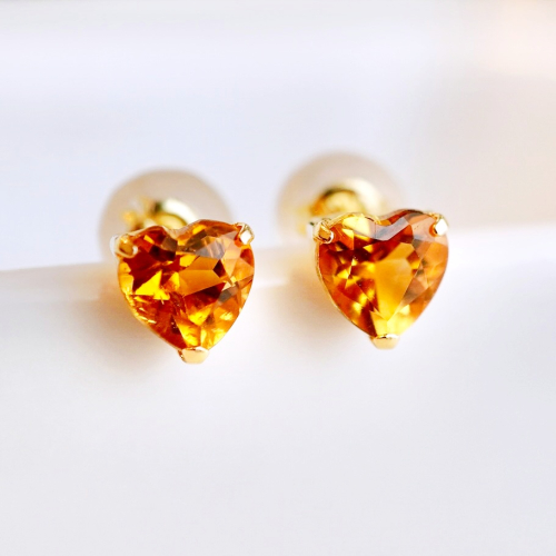 【商品詳細】 K18のシトリンのピアスです。 黄金カラーとハートシェイプが耳元で上品に煌めきを放ちます。 石はインクルージョンの少ない上質で色の濃いものを厳選しております。 スタッドタイプでシンプルなので様々なシーンにも合わせやすいアイテムです。 シトリンは11月の誕生石です。 ケースに入れ、リボンをかけてお届けいたします。 【原材料】 素材:K18(18金) イエローゴールド、シトリン(5mm)