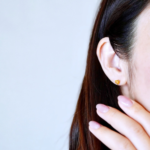 黄金カラーとハートシェイプが耳元で上品に煌めきを放ちます。
