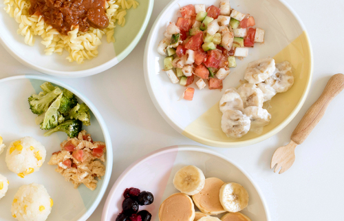 ふちを反り立たし、ごはんがすくいやすい設計。こぼさず自分で食べられる、子どもの成功体験を見守るお皿です。