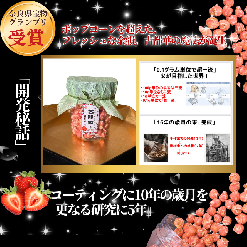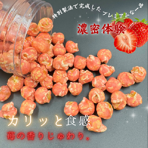 ポップコーンを超えた、フレッシュな余韻。カリっと食感!苺の香りじゅわり。