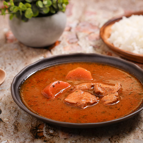 焦がしバジルと12種類のスパイスにじっくり炒めた野菜とチャツネで深い味わいに仕上げた札幌スープカレーです。