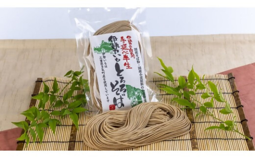 麺をつくって100余年、地元三重県鈴鹿市にある麺匠カネスエ製麺所がつくる伝統の「手延べ製法」でつくる半生そばです。国産そば粉と、国産小麦粉に地元多気町産の「伊勢いも」を使った半生タイプの「伊勢いも とろろそば」です。