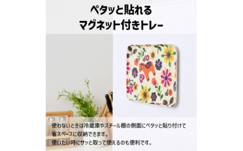 すべり止め加工で食器がずれにくく、使い終わったらマグネットで冷蔵庫にペタッと収納(トレーの“住所”が決まります)。