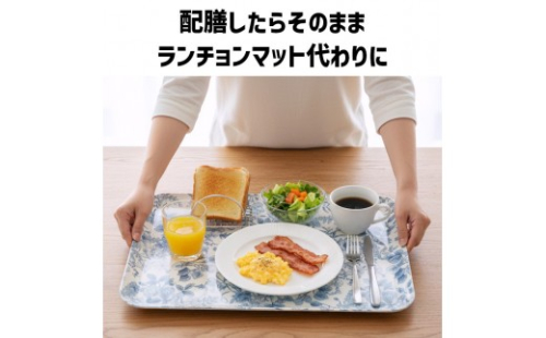 そんなときは、繊細な青い花々の「レスト」トレーが頼れる相棒。白い食器が映えて、いつものテーブルがすっと整います。