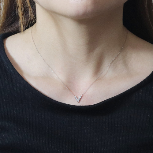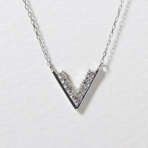 ・プラチナ 0.06ct V字ダイヤモンドネックレス