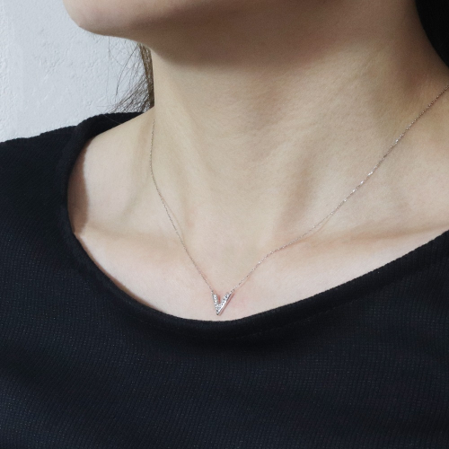 プラチナ 0.06ct V字ダイヤモンドネックレス BQ-187