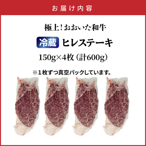 冷蔵発送/極上!おおいた和牛ヒレステーキ150g×4枚_1962R-4