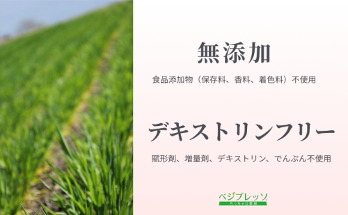 青汁「ベジプレッソ」シリーズは、余計なものを一切入れないピュア・ナチュラル製法による100%自然素材の無添加青汁です。(食品添加物(保存料、香料、着色料)不使用、賦形剤、増量剤、デキストリン、でんぷん不使用)余計なものは一切入っていませんので、自然素材100%の濃厚な青汁を安心してお楽しみいただけます。「いのち」を感じていただける青汁を目指して、信州で一包一包心を込めて手作りしています。