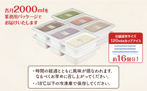 - 定期便 12ヵ月 業務用 ジェラート 2L フレーバー 6種 各月 大容量 アイス デザート スイーツ ミルク 牛乳 北海道 上富良野町