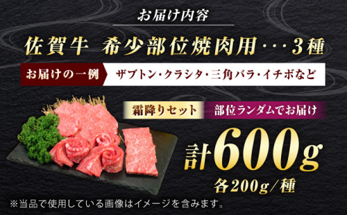 佐賀牛 希少部位 焼肉 3種 計600g 盛り合わせ【霜降り系ジューシー】 吉野ヶ里町/ミートフーズ華松 [FAY115]