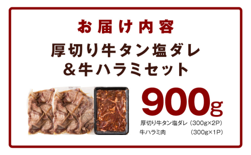 - 厚切り牛タン 秘伝の塩だれ 600g +牛ハラミ肉 300g 合計900g【牛肉 はらみ 牛タン 牛たん 厚切り牛タン 焼肉 BBQ キャンプ アウトドア 焼くだけ 訳あり サイズ不揃い 小分け】 099H4430