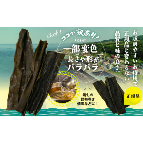 ※形が不揃い、一部変色している訳あり昆布となりますが、品質は通常品と遜色ございません。