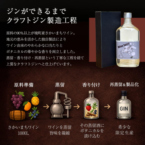 • 【Wine Spirit】ワインを蒸留してつくったフルーティなジン 375ml×1本 さかいまちワイナリー 酒 お酒 クラフト K2685