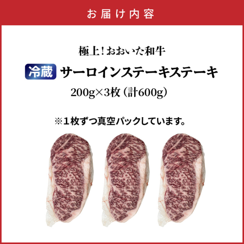 冷蔵発送/おおいた和牛サーロインステーキ600g(200g×3枚)