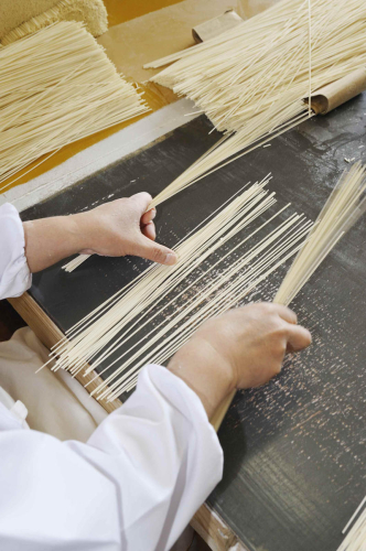 稲庭うどんは、秋田県湯沢市稲庭町発祥の伝統的な手延べ干しうどんで、日本三大うどんのひとつに数えられる逸品です。古峯堂の稲庭うどんは、300年以上前から受け継がれてきた伝統と製法を守り、温度や湿度を見極めながら、じっくりと熟成・乾燥させ、3日間の時間をかけて製造しております。原料は精選された上質な北海道産小麦にこだわっており、茹で上がりの半ば透き通ったつややかさ、コシのあるなめらかなのど越しや風味をお楽しみ頂けます。秋田県湯沢市の豊かな自然の恵みを受け、丹精こめて作った稲庭うどんです。皆様の食卓に彩りと笑顔をお届けいたします。