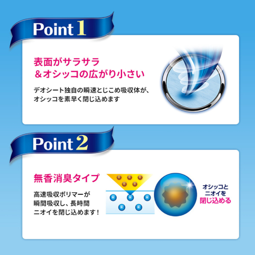 ●オシッコを瞬間吸収して長時間ニオイを閉じ込める無香消臭タイプ。