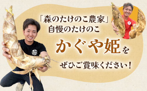 オリジナルブランド【かぐや姫】は静岡県周智郡森町で栽培し、たけのこの収穫が終わる5月頃から翌年3月頃の収穫までの1年かけて自家製配合有機肥料やたけのこ畑の管理方法でこだわり抜いたたけのこです!