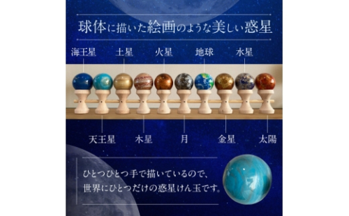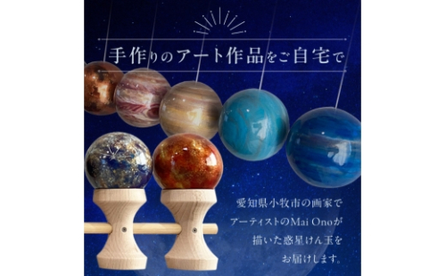愛知県小牧市の画家でけん玉アーティストのMai Onoが描いた惑星けん玉10連セットでお届けします。