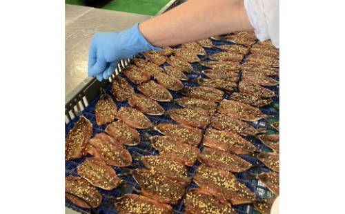 国産の真いわしを開き旨味豊富の特製甘ダレに漬け込んでから1枚ずつこんがり焼きあげました。