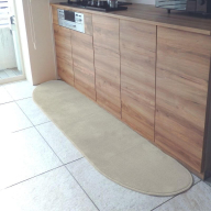 織物の優しいふみ心地がキッチンタイムを心地よくしてくれます。 裏面は滑りにくい加工を施しています。 クールでモダンな曲線が印象的な「ゆりかご型」、 カラーは、どんな空間にも馴染む「アッシュベージュ」でキッチンを演出! アクリル100%、製造地:泉佐野市